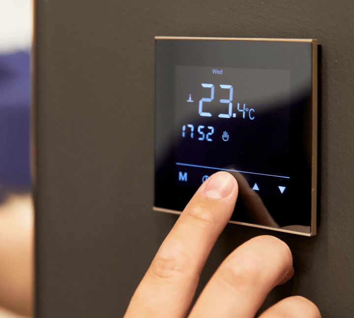Proponujemy sterowanie temperaturą z poziomu termostatów znajdujących się w poszczególnych pomieszczeniach, telefonu lub z jednostki centralnej. Używamy kabli i termostatów jednego producenta co gwarantuje bezproblemową współpracę wszystkich elementów.