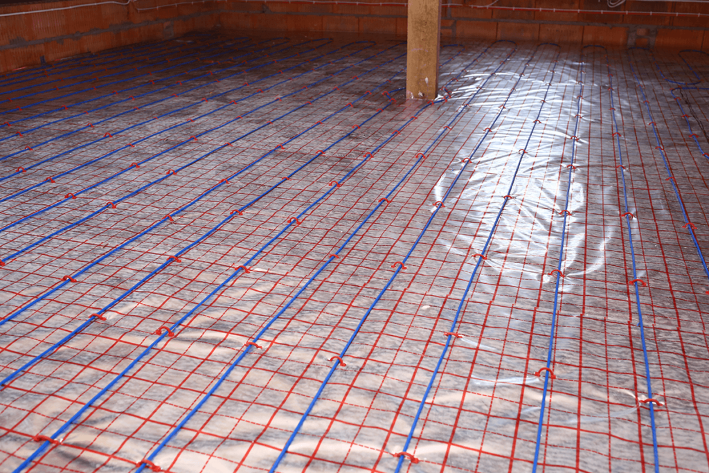 Kable grzejne układane są w dolnej części wylewki betonowej na warstwie termoizolacji. Rozmieszczone zostają równomiernie w określonych odstępach na całej dostępnej powierzchni podłogi. W każdym pomieszczeniu znajduje się oddzielny termostat.